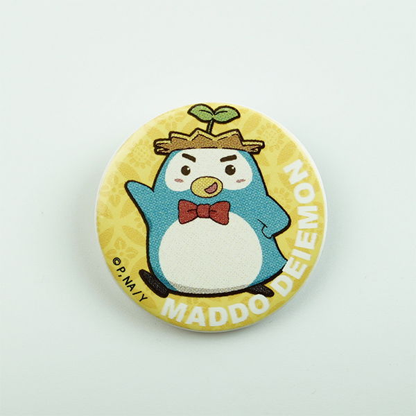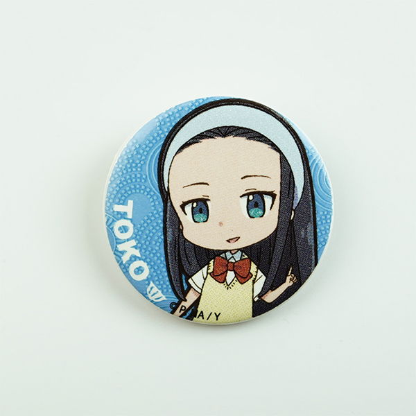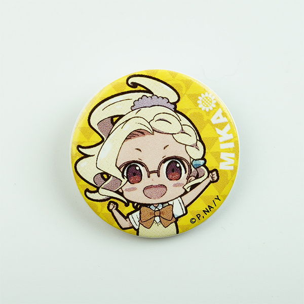 タイルの製造方法で製作したブローチ。4人と2体のキャラクターのイメージを転写し、磁器ならではの存在感と耐久性で鞄や帽子などに気軽に着けて楽しめます。