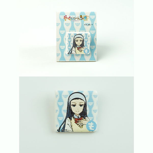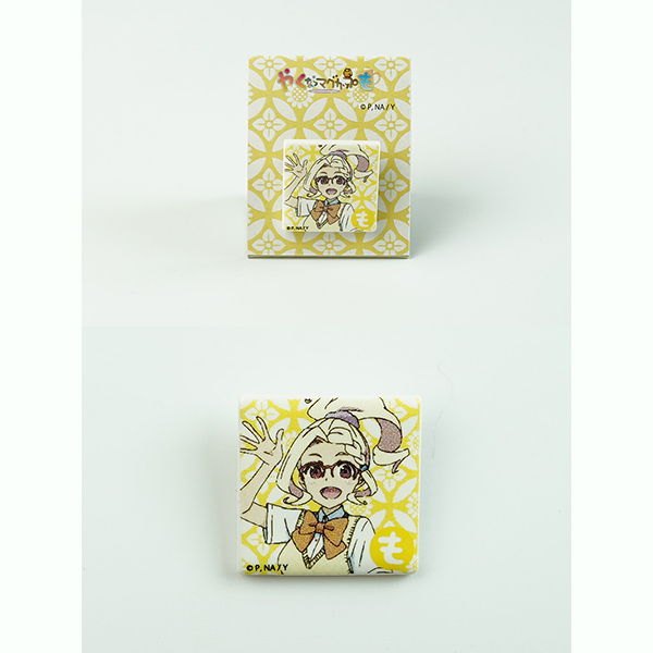 やくも美濃焼タイル ブローチ 発売日 2021年5月16日 価格(税込) 各2,530円 サイズ 20mm角・厚み2㎜ デザイン数 4種 販売元 ㈲鈴研.陶業 問い合わせ先 七窯社 タイルの製造方法で製作したブローチ。4人のキャラクターのイメージを転写し、磁器ならではの存在感と耐久性で鞄や帽子などに気軽に着けて楽しめます。