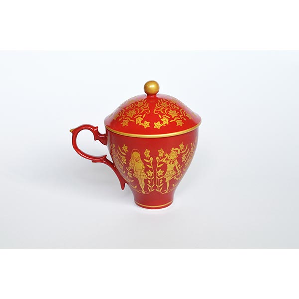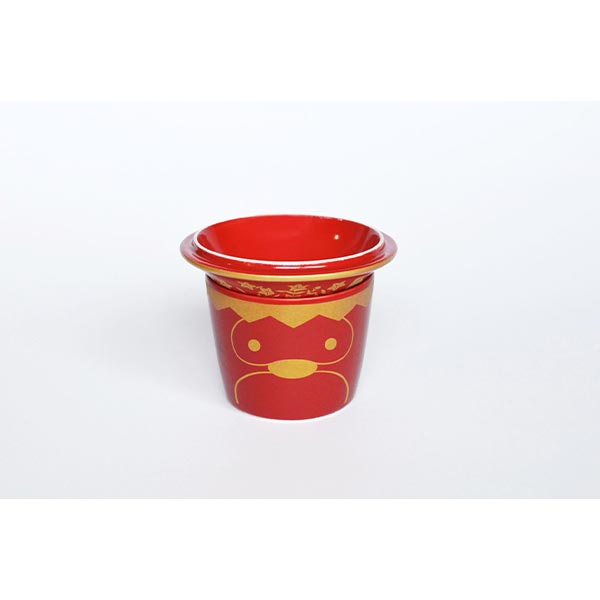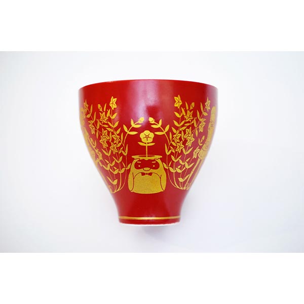 かみさまがかわいい蓋置付の「ふたマグ揃」です。やくものキャラクターシルエットと桔梗の花を金彩で豪華に彩りました。持ち手もおしゃれに一工夫しています。 ティータイムはやくもと一緒に!飾っても一緒に過ごしていただける、そんな一品です。