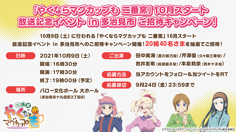 TVアニメ&実写『やくならマグカップも 二番窯』公式Twitter(@yakumo_project)にてキャンペーン実施中!
