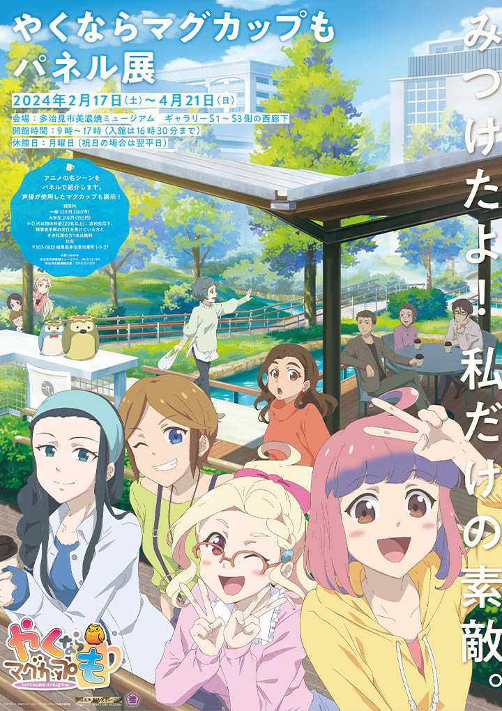 「やくならマグカップも」の名シーンをパネルで振り返る展示会が多治見市美濃焼ミュージアムにて2024年2月17日(土)から開催です!田中美海さん達、主演声優が使用したマグカップも展示。